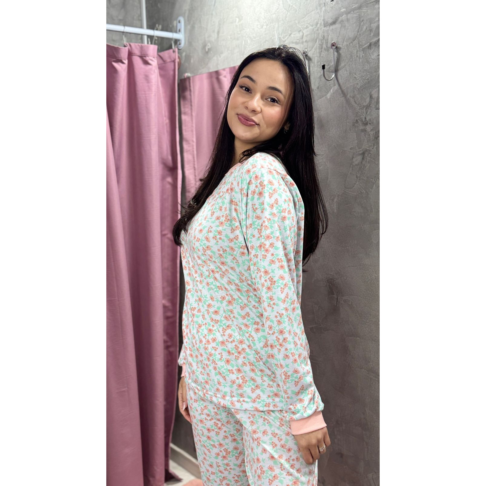 Pijama Manga Longa Florzinhas Rosê quantidade