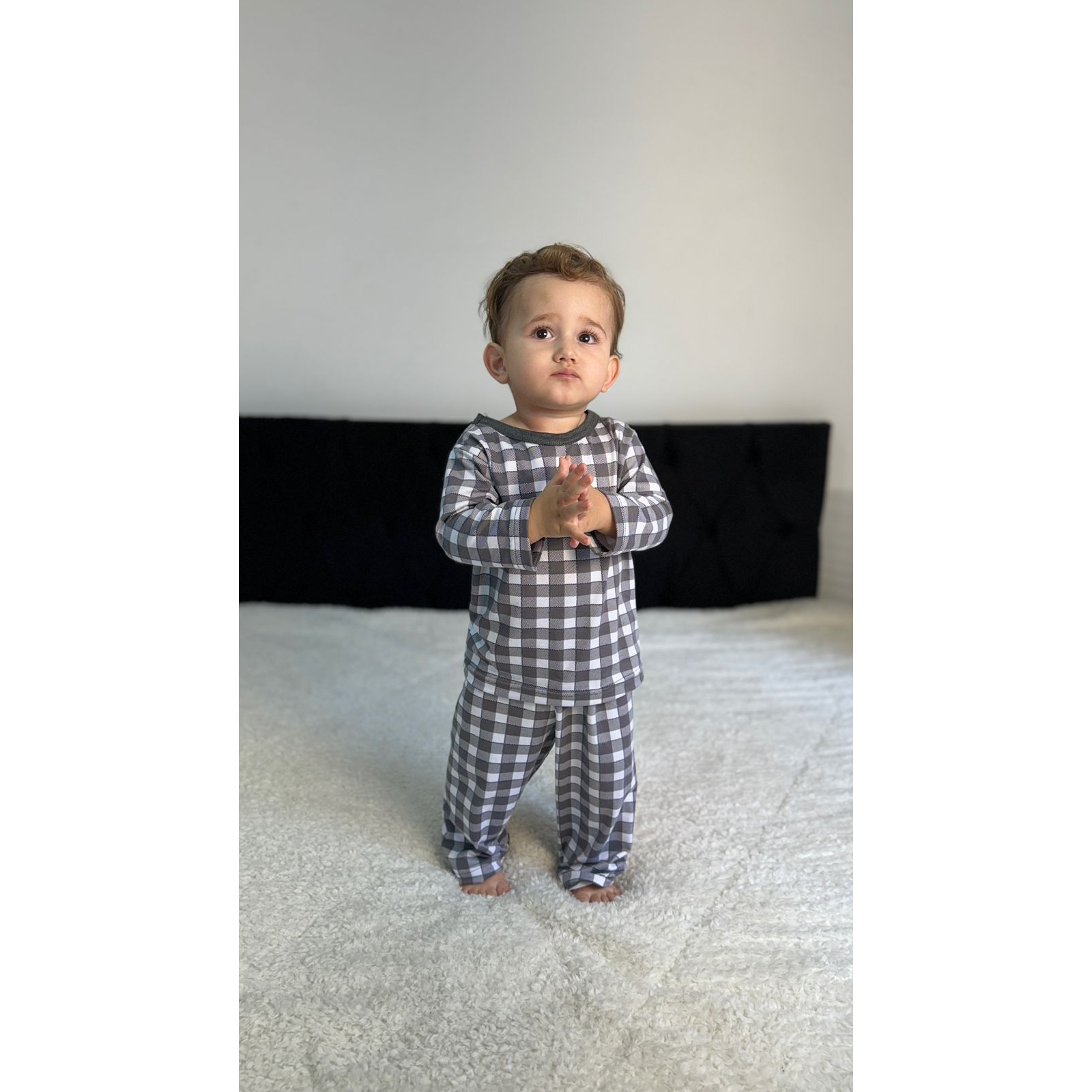 O pijama infantil de manga longa na cor cinza é confeccionado em tecido suede, garantindo um toque macio e aveludado que proporciona máximo conforto durante o uso. Ideal para os dias mais fresquinhos, ele mantém o corpo aquecido com leveza.