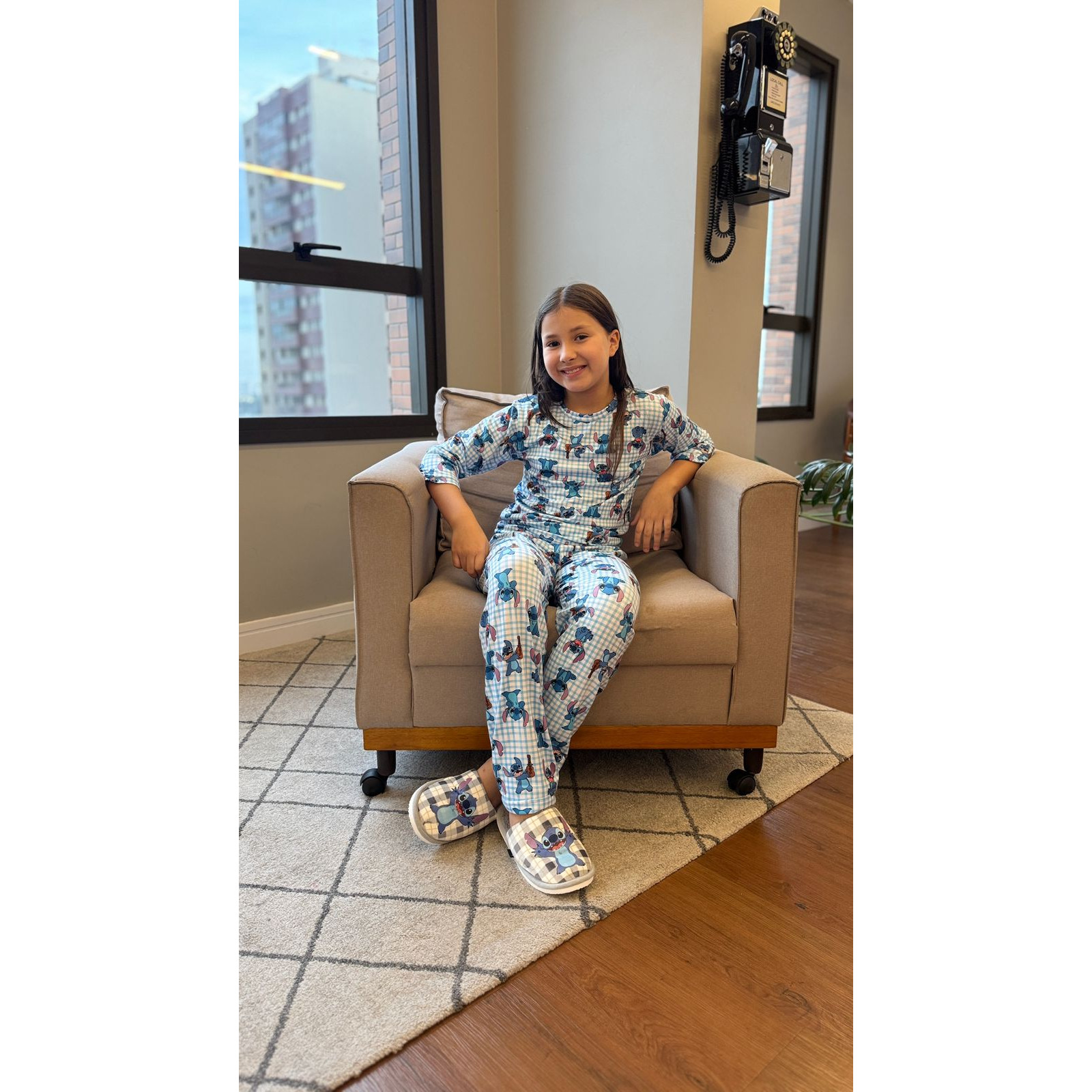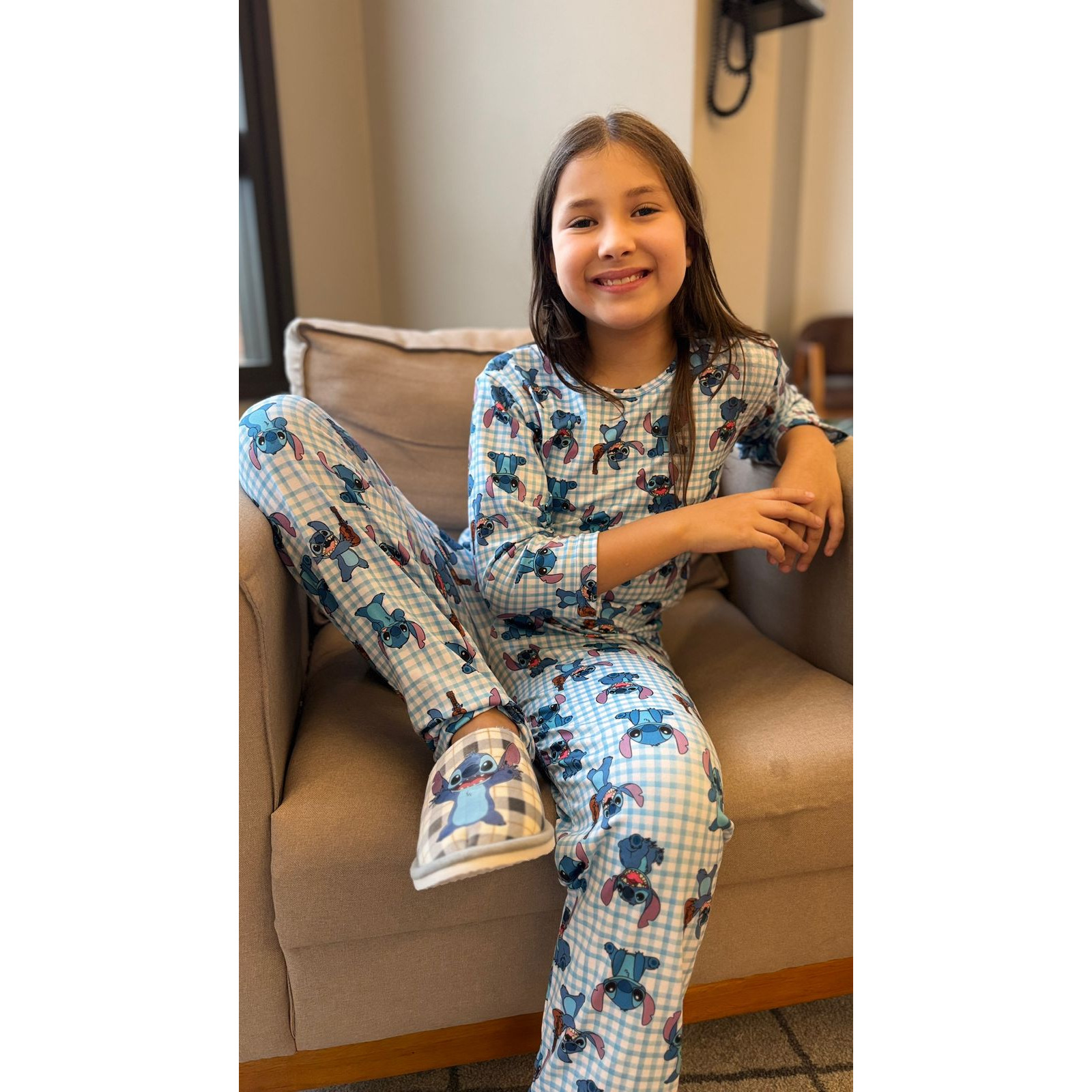 O pijama infantil de manga longa com calça em suede traz a estampa do Stitch, unindo fofura e estilo em uma peça super aconchegante. Confeccionado em tecido macio e aveludado, mantém a criança aquecida e confortável nos dias mais fresquinhos.